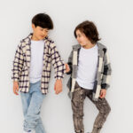 No i nasze koszule w kratę – wiadomo, klasyk. Miękkie, wygodne, idealne narzutki na t-shirt albo element warstwowej stylówki. Sprawdzają się wszędzie: w szkole, na spacerze, na wyjeździe.