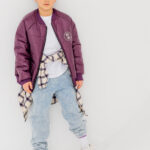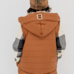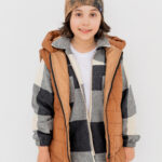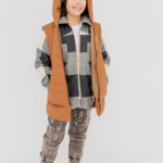 Całość podkręcamy pikowaną bomberką w burgundzie i kamizelką z kapturem w kolorze camel. Lekko, wygodnie, ale z charakterem. Idealne na wiosenne dni, kiedy pogoda lubi zaskoczyć.